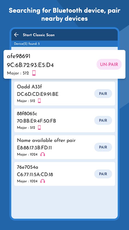 🔗 Laden Sie jetzt Bluetooth Pair and Scanner herunter und übernehmen Sie die volle Kontrolle über Ihre kabellose Welt!