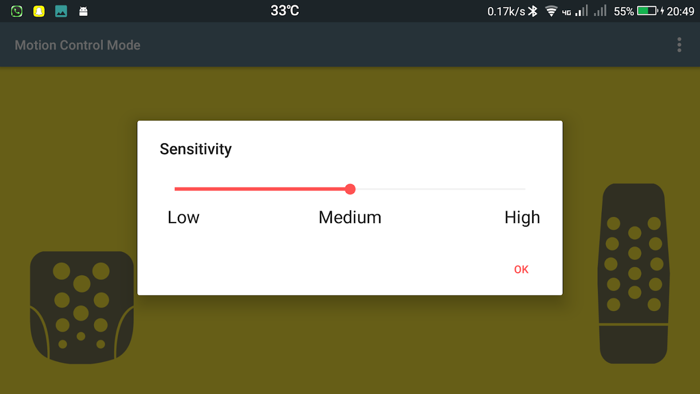 Use the break pad and accelerator pad to make the robocar move forward or backward. Tilt your device towards the left or right to turn the robocar accordingly