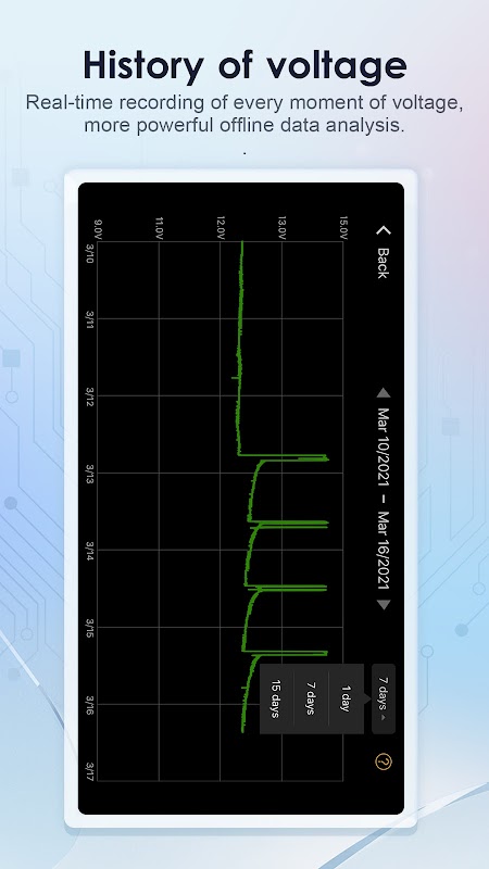 Battery Monitor BLE ist eine Anwendung zur Überwachung von Autobatterien, mit der die Spannung der Autobatterie in Echtzeit überwacht werden kann. Zählen Sie die historische Spannung der Batterie. Es kann die Startspannung der Batterie automatisch testen und Leerlauf- und Hochgeschwindigkeitsladetests unterstützen. Alle Daten werden über Bluetooth mit der mobilen App synchronisiert.