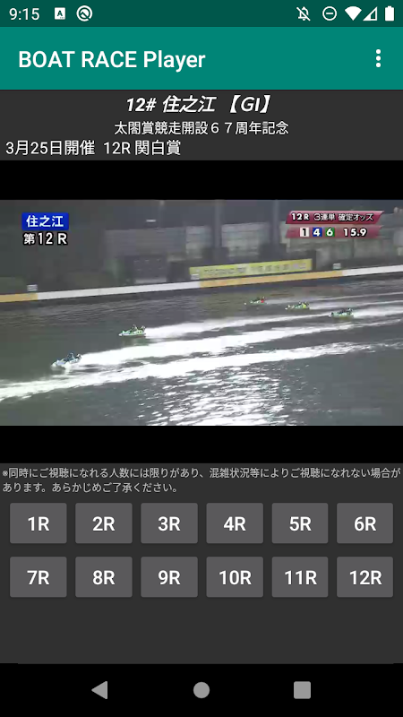 Dies ist ein spezieller Player für BOAT RACE. Mit dieser einzigartigen Software können Sie auf jeder Rennstrecke nur die Rennen des heutigen Tages und des Vortages verfolgen. Sie ist jedoch so einfach, dass Sie die Rennen nach dem Start mit nur drei Berührungen verfolgen können.