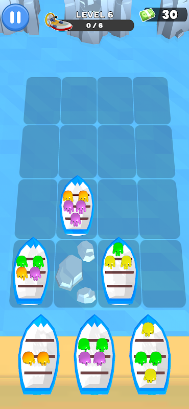 Ziehen Sie die Boote nebeneinander, um ihre Passagiere zu sortieren