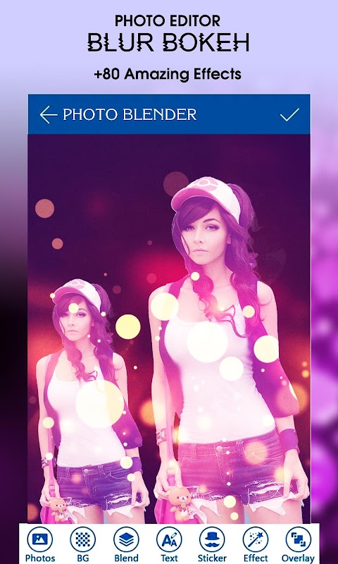Bokeh Blend Photo Editor is application with amazing lighting bokeh on your picture. These spectacular bokeh effects based filters can be easily applied on your pics. Application allows you to add and blend unlimited your picture with awesome background using Photo Blender Features.