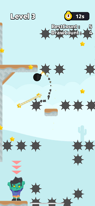 Bei BombDrawLine geht es nicht nur um das Zeichnen von Linien. es geht um strategische Planung und Timing. Sie müssen vorhersehen, wie Bomben mit der Umgebung interagieren, und Ihre Linien entsprechend planen. Dies kann bedeuten, eine Reihe kleiner Sprünge zu erstellen, um Hindernisse zu umgehen, oder eine große Rampe, um die Bombe über eine Gruppe von Zombies zu werfen. Jedes Level bietet ein neues Rätsel, das Sie dazu bringt, über den Tellerrand hinaus zu denken.