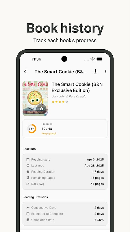 3. Kreisförmige Fortschrittsanzeige: Sehen Sie Ihren Lesefortschritt auf einen Blick! Freuen Sie sich jeden Tag über kleine, aber deutliche Erfolge.