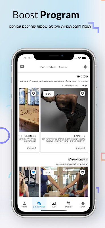 BOOST online ist eine Anwendung, die die professionellsten Trainings- und Fitnesstrainer Israels zu Ihnen nach Hause bringt. Sie können zwischen LIVE-Training und aufgezeichnetem Training wählen, das täglich in der VOD-Bibliothek aktualisiert wird, und auch die Ernährungsbegleitung genießen.