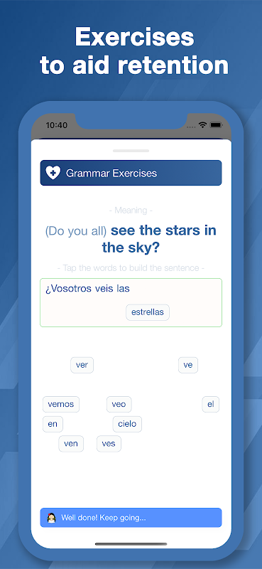Neben der Grammatik werden Hunderte neuer Wörter eingeführt, um den Lernenden dabei zu helfen, ihre Spanischkenntnisse im Sprechen und Verstehen schnell auszubauen.
