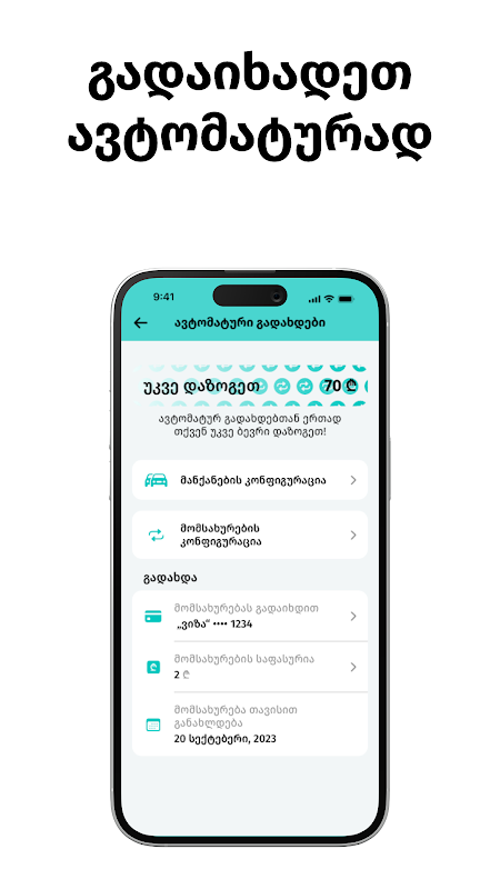„Borbalo“ bietet außerdem einen zusätzlichen Service an – „Automatische Zahlungen“. Hierbei handelt es sich um ein intelligentes System, mit dem Sie Bußgelder am letzten Tag des Rabatts immer zum besten Preis bezahlen können. Sie können Parkausweise auch automatisch über den Service erwerben.