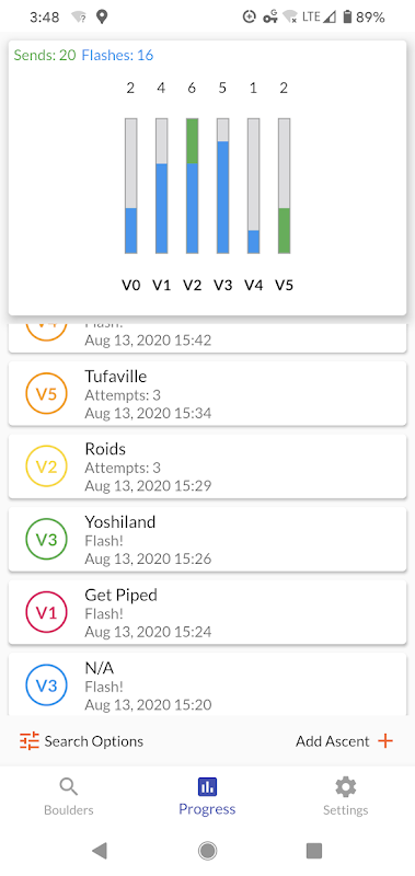 Find nearby indoor or outdoor boulders, and track your progress!