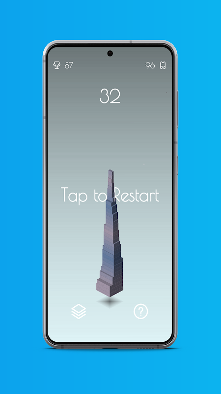 Dies ist ein hyper-lässiges Blockstapelspiel mit einem schönen und einfachen Interface-Design und einem einfachen und direkten Gameplay. Der Zweck besteht darin, herauszufordern, mehr Blöcke zu stapeln. Entspanne dich einfach und glaube daran, dass du kontinuierlich höhere Punktzahlen erzielen und dich ständig übertreffen kannst.