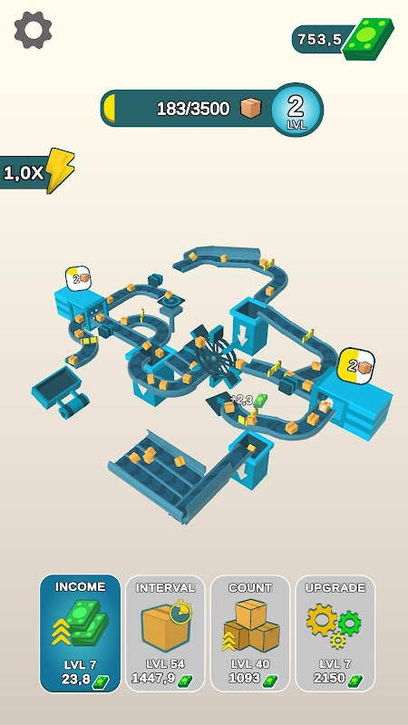 – Verbessere die Effizienz der Mechanismen: Geschwindigkeit, Intervall des Kisten-Erscheinens und Einkommen!