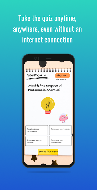 Sind Sie bereit, Ihr Android-Entwicklungswissen auf die Probe zu stellen? Suchen Sie nicht weiter als Brain Quiz: IQ Challenge! Tauchen Sie ein in ein beeindruckendes Quiz-Erlebnis, das speziell für Android-Enthusiasten entwickelt wurde. Mit Brain Quiz können Sie Ihre Fähigkeiten verbessern, Ihr Fachwissen erweitern und Ihren Intellekt mit einer Vielzahl von zum Nachdenken anregenden Fragen herausfordern, die jeden Aspekt der Android-App-Entwicklung abdecken.