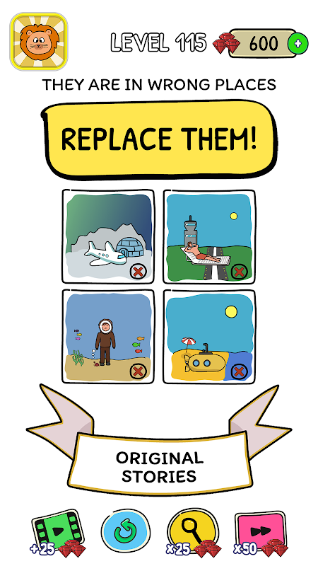 Brainstorm Test ist auch ein unterhaltsames Quizspiel. Es macht Spaß, weil es dich durch Aktionen und knifflige Entscheidungen zum Lernen anregt. Das Spiel reißt dein Gehirn ein. Mit zunehmender Spielzeit wirst du schneller. Jedes Rätsel hat eine einzigartige und originelle Lösung.