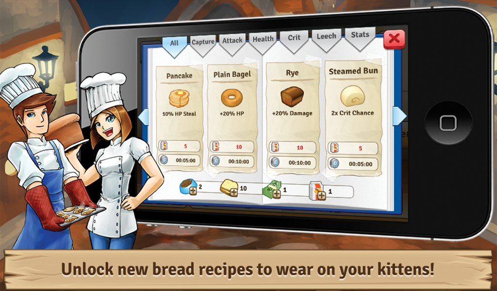 Machen Sie eine Reise in die Welt der Catlandia wo unschuldige Kätzchen von dem bösen ChowCorp und von ihrem freien Willen gehalten gehirngewaschen werden! Sparen und sammeln Sie so viele Kätzchen, wie Sie können von ihnen Panieren, reisen durch jede Region einzigartige Kätzchen zu finden, und backen leckere Brot auf Ihre Katze zu tragen, in Schlachten zu helfen!