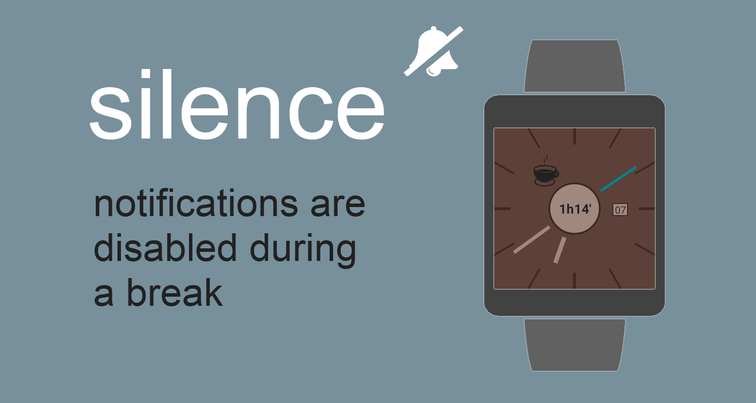 Du bist in der Arbeit und benötigst eine Pause von deinen EMails, Anrufen oder anderen Benachrichtigungen? Ziehe einfach die Tasse auf deiner Uhr und mach eine Pause, ohne gestört zu werden.