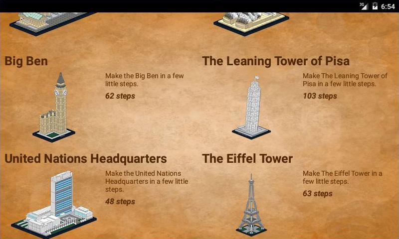 Get ready to play with the architectural buildings! This architecture in bricks have everything you'll need for a big city. There is The Willis Tower, John Hancock Center, Empire State Building, Seattle Space Needle, Sydney Opera House, Guggenheim Museum, The White House, Rockefeller Center, Burj Khalifa, Brandenburger Gate, Big Ben, The Leaning Tower of Pisa, United Nations Headquarters, The Eiffel Tower, Trevi Fountain and many more. Open your city and play with the bricks. The buildings are divided into sub-models for easy building and instant play! Create those elegot figures and get the real and legot figures. Use alternavite colors and create your own.