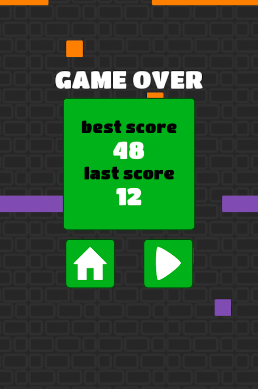 Tap to the left or to the right to guide the brick! Your goal is to avoid all the bars and blocks to achieve the highest score.