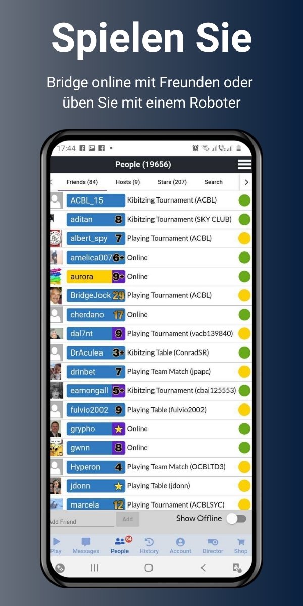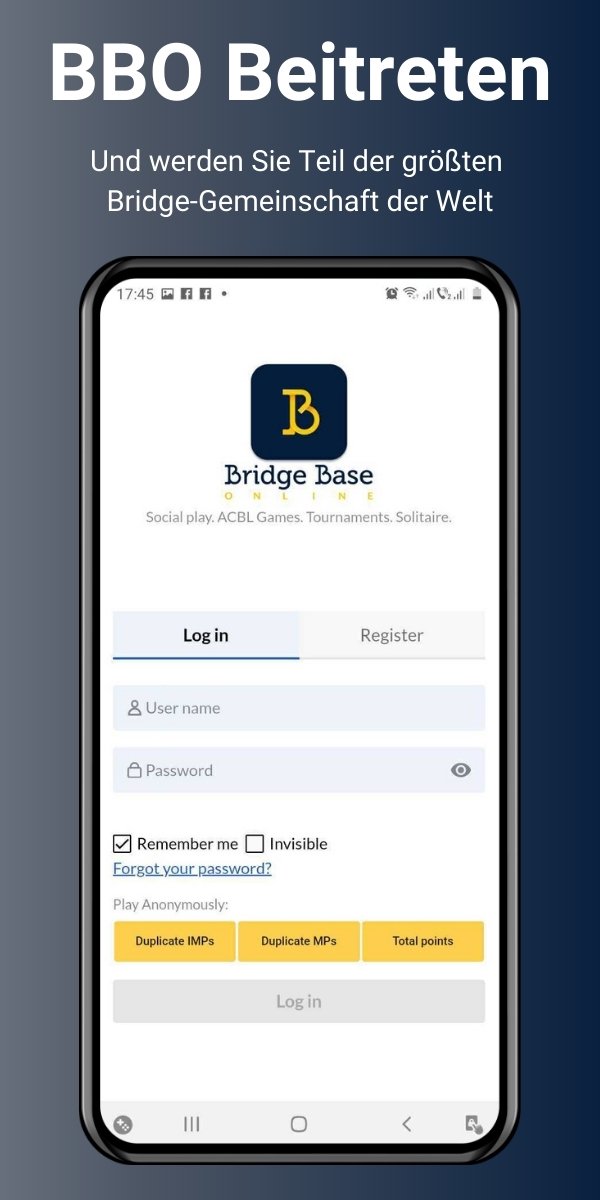 Play contract bridge on Bridge Base Online (BBO), the world’s largest bridge site. Practice with bots or log in and play with other people. Compete in ACBL tournaments against players at your level. Watch the world’s finest players compete, or just kibitz at popular tables.