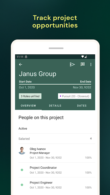 – Verfolgen Sie Verfolgungsprojekte und weisen Sie Personen zu, noch bevor Sie das Angebot erhalten