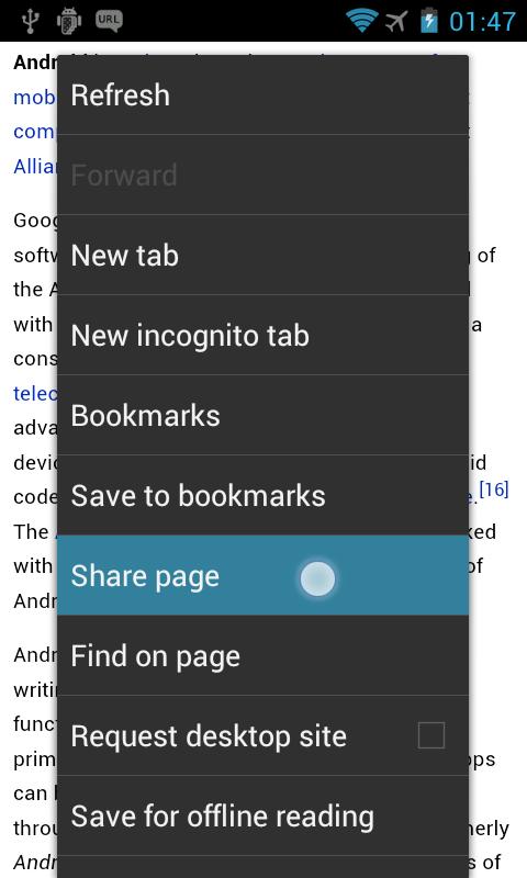 1. Select "Share page" menu in an web browser.