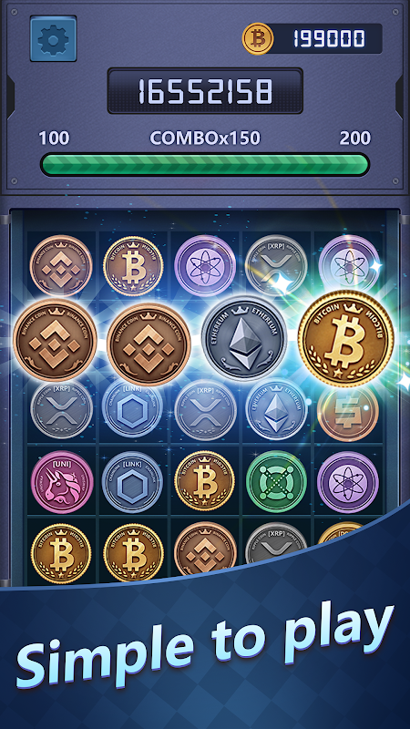 Wischen Sie mit Ihrem Finger, um zwei oder mehr identische Münzen zu einer fortgeschrittenen Münze zu verbinden, und versuchen Sie, Spielstützen für mehr Kombinationen zu verwenden!