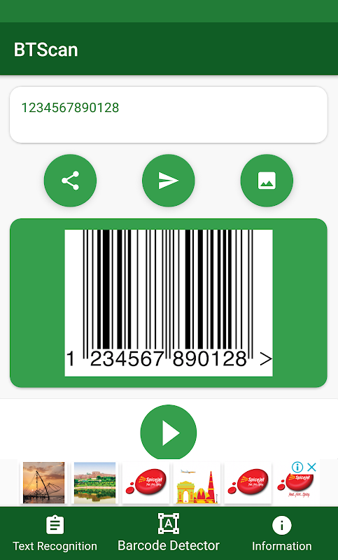 BTScan hilft mit einer Option Text aus einem Bild zu erkennen, die extrahierten Inhalte über Social Media oder andere Plattform zu teilen. Der Barcode-Scanner arbeitet mit einem Bild aus der Galerie genommen oder mit der Live-Kamera.