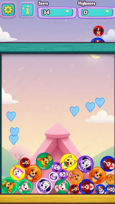 Bubble Dogs ist ein lustiges, entspannendes und fesselndes Hundespiel mit Bubble-Puzzle, in dem niedliche Welpen und Hunde in bunten Blasen schweben. Stelle Hundefamilien zusammen, schaffe Platz, schalte mächtige Boni frei und knacke deinen Highscore in diesem unterhaltsamen Puzzlespiel.