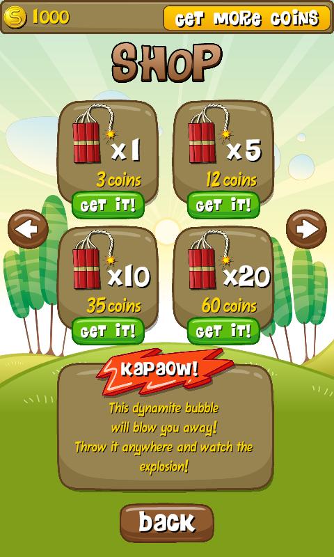 - WOOSH: Special cannon power which will shoot straight through the bubbles