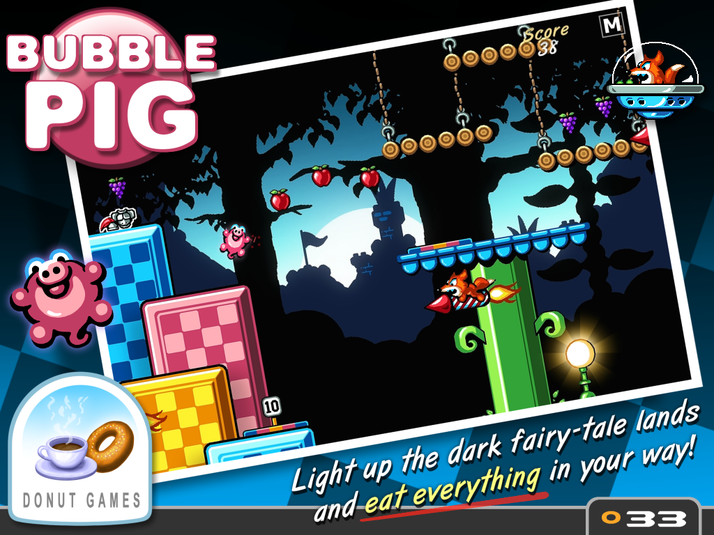 – 60 Level* voller lustiger Rätsel, Essen (hey, er ist ein Schwein) und Bonusgegenständen