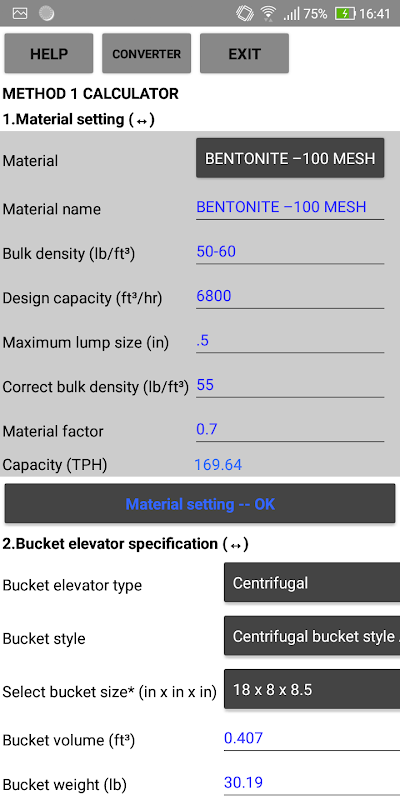 - Werkzeug zur Auslegung und Berechnung von Becherwerken. Der Benutzer kann die Bucket-Auswahl ausprobieren und dann die Konstruktionsrichtlinienwerte überprüfen.