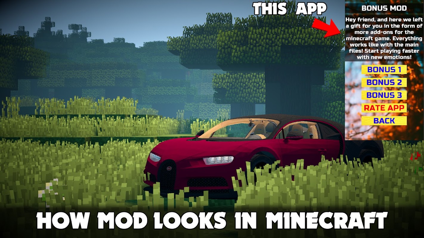 🤩 Bugatti Mod for Minecraft PE 🤩 this is a launcher app that helps you import mods into a game called MCPE!