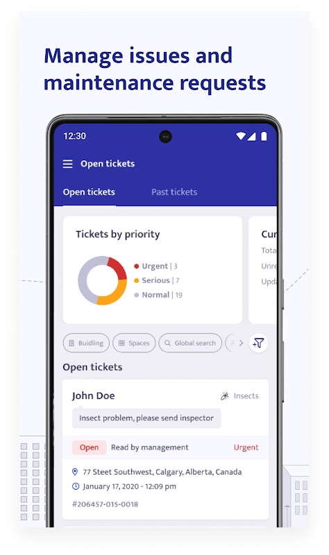 Mieter können Probleme schnell direkt an das Management übermitteln und wichtige Gebäudepläne und -informationen auf ihrem Portal anzeigen. Es war noch nie einfacher, mit dem aktuellen Status Ihrer Mieteinheit auf dem Laufenden zu bleiben.