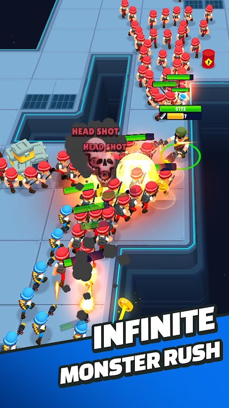 - Verbessere deine Waffen und deinen Trupp, um alle Monster zu zerstören.