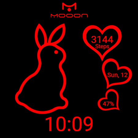 Mehrfarbiges Zifferblatt mit Hase, Digitaluhr, Datum, Schrittzähler für Wear OS.