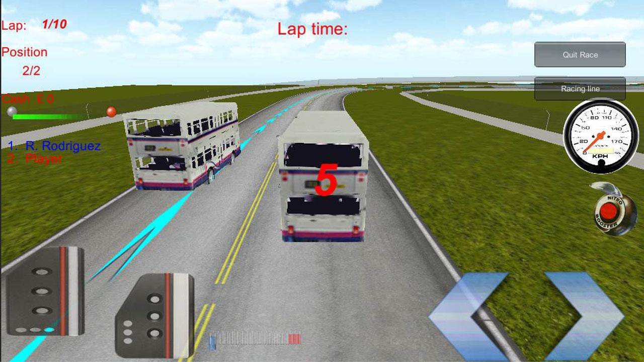 Start the game off as the driver of a Double Decker bus race around the track competing against the other Bus controlled by A.I. After racing for 10 laps and earning cash as you go you can leave the track and explore an open world style 3D simulation game.