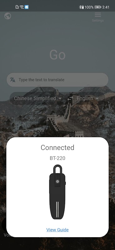 Der Byte Engine Translator mit smart-Headset übersetzt mehr als 100 Sprachen und übersetzt Text, Sprache (zur Verwendung in jeder App), Unterhaltungen, Kamerafotos und Screenshots. Sie können sogar Sprachen kostenlos herunterladen, um sie offline zu übersetzen und auf Reisen zu verwenden