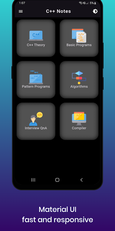 Die App „C ++ Notes“ verfügt über eine sehr einfache und interaktive Benutzeroberfläche. Es ist die beste App, mit der Sie die Programmiersprache C ++ kostenlos lernen können. Also, worauf wartest Du? Laden Sie die App jetzt herunter, um Experte für C ++ - Programmiersprachen zu werden