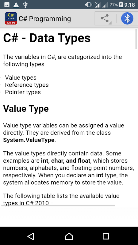 C# programming language is a simple, modern, general-purpose, object-oriented programming language developed by Microsoft within its .NET initiative led by Anders Hejlsberg. This app will teach you basic C# programming and will also take you through various advanced concepts related to C# programming language.