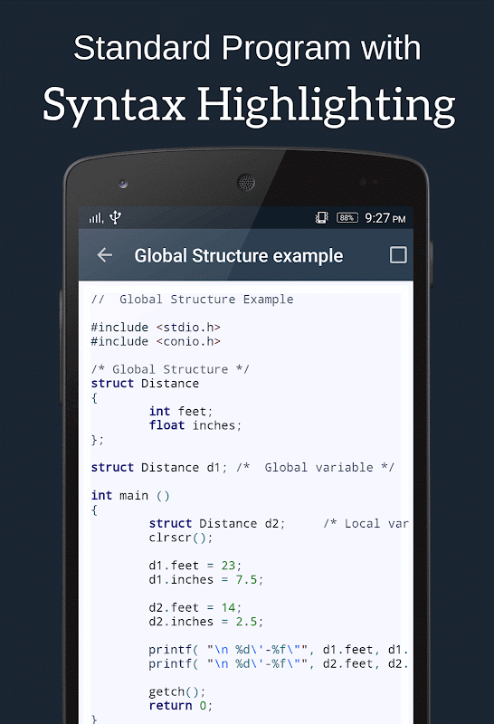 1. Theory : All of the C Programming theories are included in this app to help u learn.