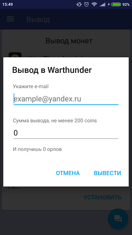 Просто укажи свой email и мы переведем монеты в орлы. Минимальная сумма для вывода - 200 монет, за это ты получить 7 орлов.