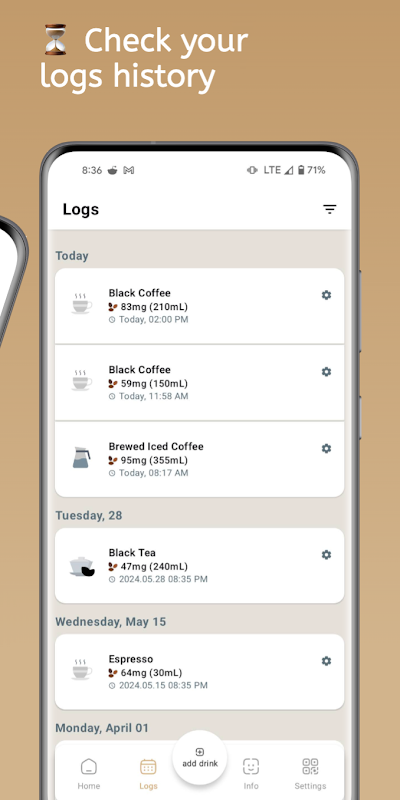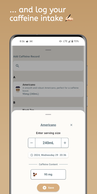 ✅ Protokollieren Sie Ihre Koffeinaufnahme ganz einfach mit unserem intuitiven Tracker 📊