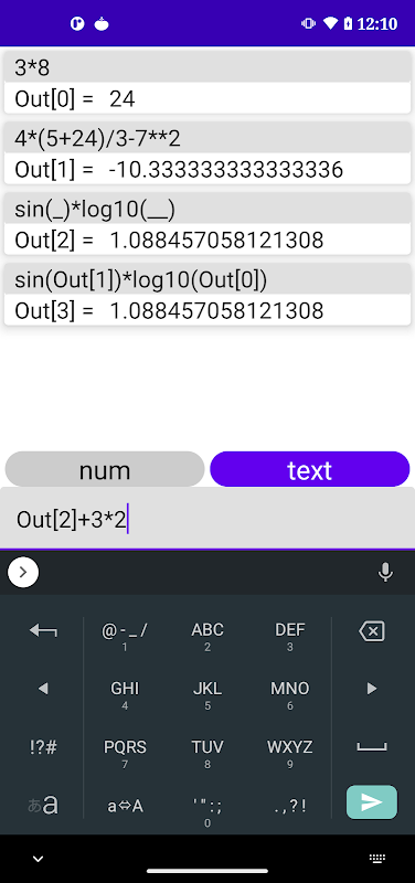 To use repl on the Phone, the UI is similar to a calculator. You can do simple calculations by touch. If you want to do more complex calculations, you can switch to plain text input mode to write a python expression.