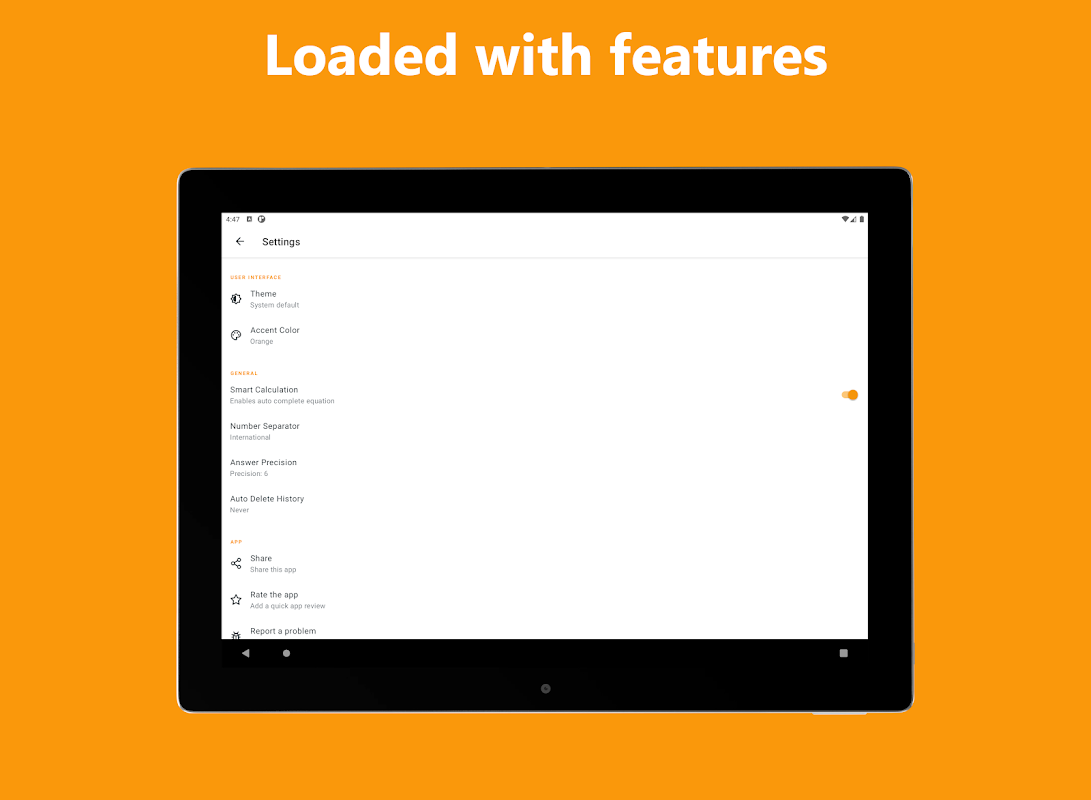 Der Rechner bietet einfache und erweiterte mathematische Funktionen für den täglichen Gebrauch. Es ist auch vollgepackt mit verschiedenen Themen und Designs für unterschiedliche Stimmungen. Es ist ein einzigartiger und sehr effizienter Rechner mit fortschrittlicher Fehlerbehandlung. Es wurde entwickelt, um Fehler intelligent zu behandeln.