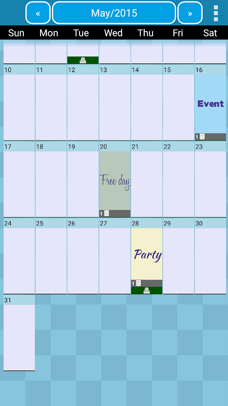 Dieser Zeitplan soll alle möglichen Informationen auf dem gleichen Bildschirm sowie ein Post-It, die Anzahl der Aufgaben haben, programmierten Alarme oder Android 3 ab Veranstaltungen Kontakte, zum Beispiel, wenn ein Kontakt an diesem Tag ist dein Geburtstag werden Sie sehen, eine Ikone der Kuchen, wenn es ein paar Herzen Jubiläum zu sehen, ob jedes andere Ereignis ein Symbol von ein Megaphon zu sehen.