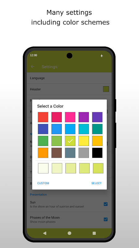 Kalender zeigt den aktuellen Tag, Sonnenaufgang und Sonnenuntergang, historische Ereignisse und vieles mehr.