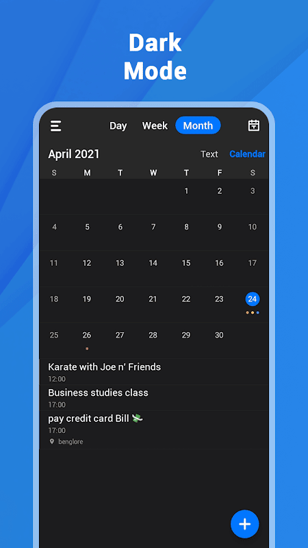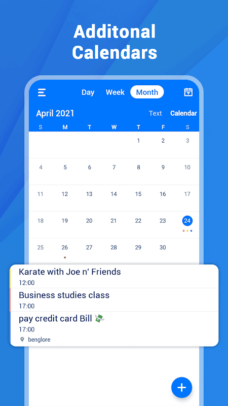 ✔️ Different ways to view your calendar - Quickly switch between month, week and day view.