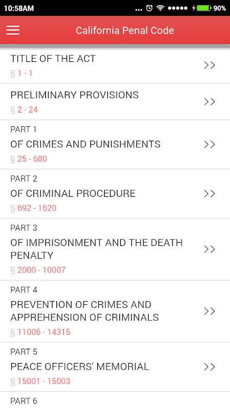 Diese App bietet den vollständigen Text von Kalifornien Strafgesetzbuch auf Ihrem Gerät