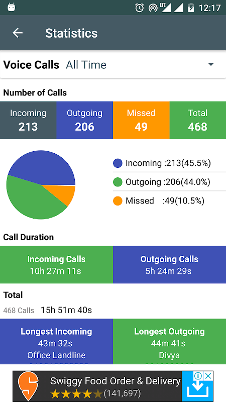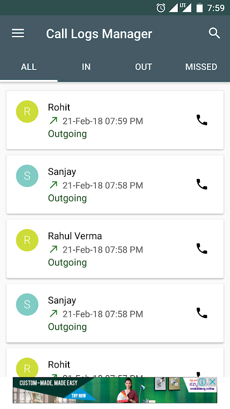 Call Logs Manager keep your all call logs history data including incoming, outgoing and missed calls.