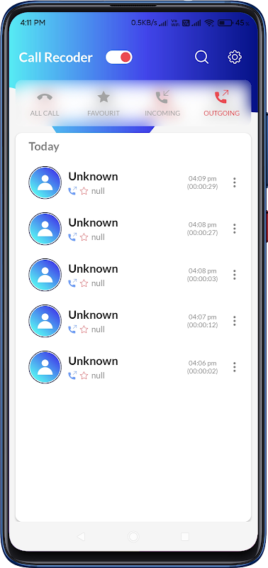 Auto Call Recorder application can be used as a voice recorder and auto call recording. Call Recorder: Automatic Call Recorder can automatically start audio recording when the user receives or make a phone call.