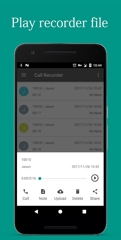 Listen to the recording, add notes and share it. Upload with Google Drive to be saved.