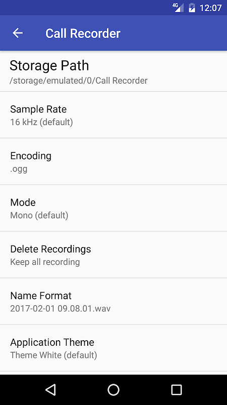 Anrufsaufzeichnung mit benutzerdefiniertem Aufzeichnungsordner.